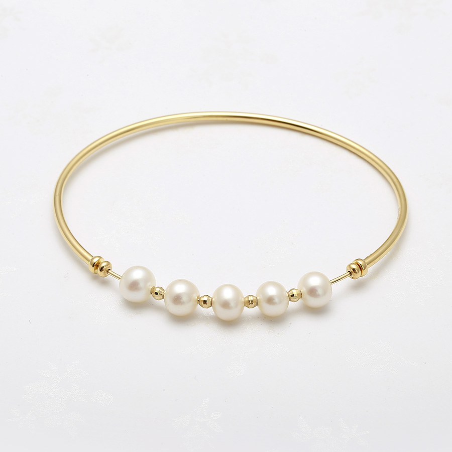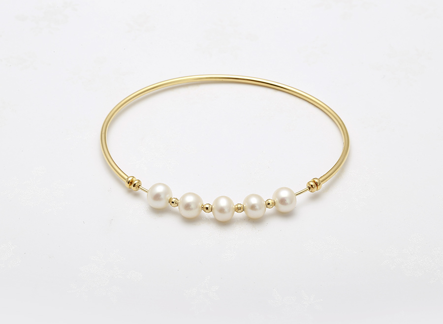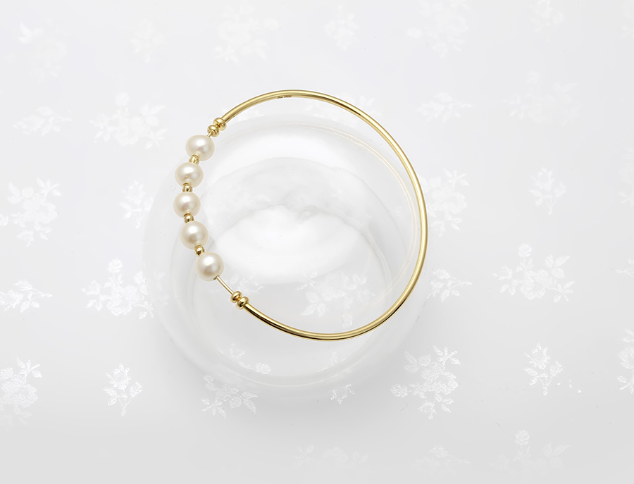 Lắc tay vàng 18k ngọc trai thật 6-7mm Dori với những nét thiết kế mềm mại, vạn người mê.